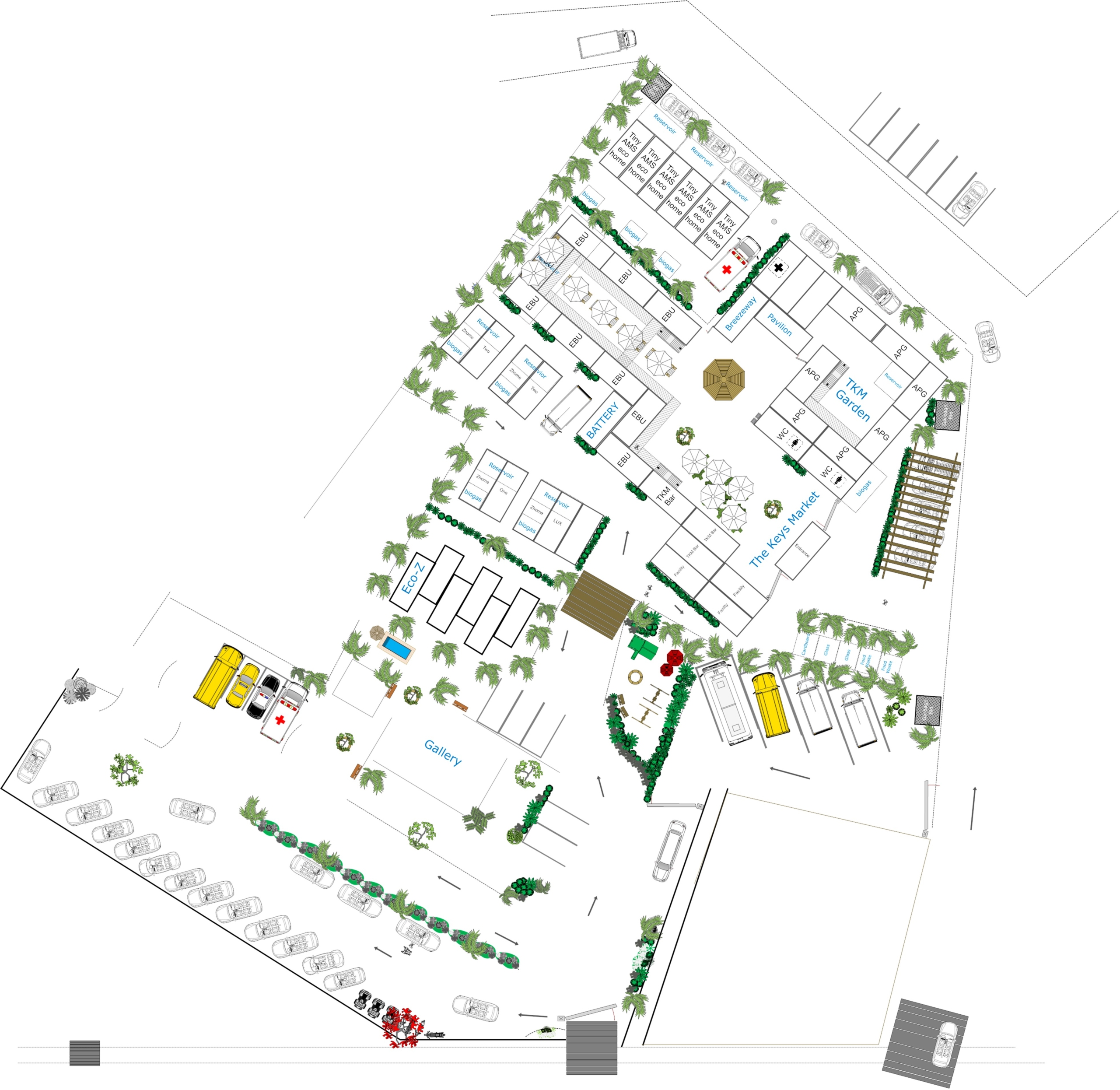 The landscaped premisses with different sections and common areas for relaxation like the community pool, outdoor fitness and kids playground, special built BBQ outdoor kitchens, and The Keys Market which organizes local market events and its Food Court boasting a variety of national and international cuisines. This location will offer other facilities such as a common laundry room, parking lot equipped also for charging electrical vehicles, The Keys Market Garden and a Health & Wellness that functions as a shelter during hurricane season. The Keys Market Garden is set up as a Community Supported Agriculture (CSA) section to provide fresh produce, fish and crustaceans which will be sold at local market events and or be processed by Food Vendors at the Food Court located at the entrance of the premises.